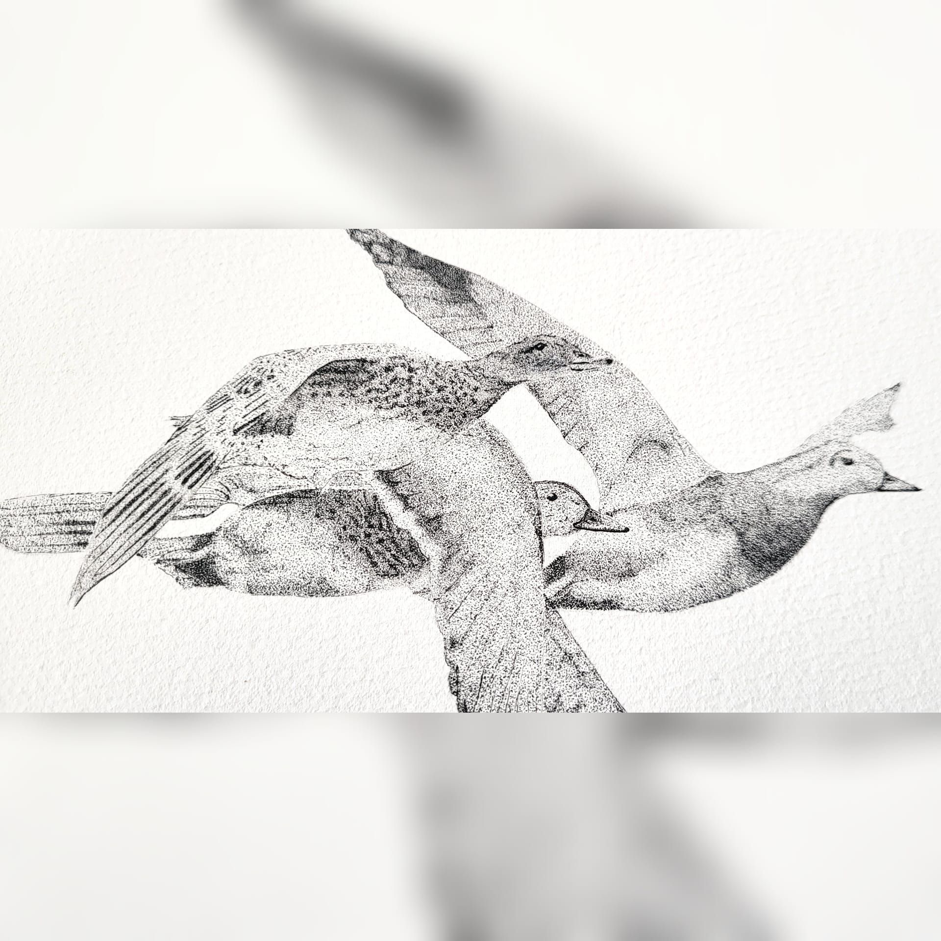 Geese in dots.